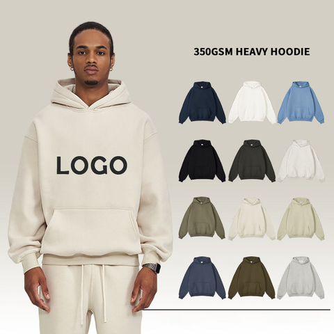 LOGO con stampa personalizzata 350G felpa da uomo in pile tinta unita tinta unita felpa con cappuccio Casual oversize